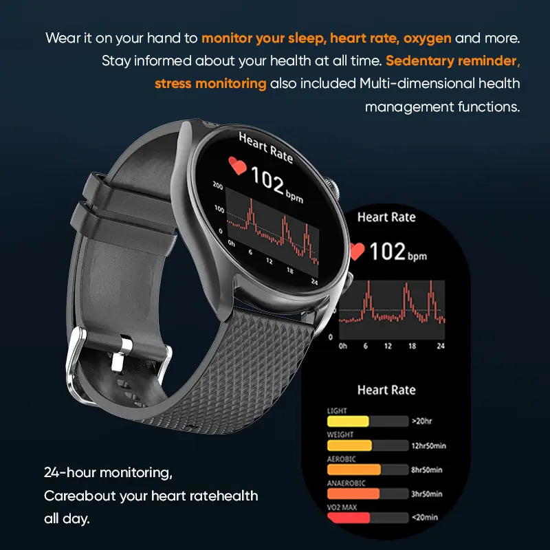 ساعة ماركة VIDVIE تصميم دائري بشاشة. دقة عالية AMOLEDبطارية 300mah شحن يدوم 4-7ايام تدعم التطبيقات الرياضيةتدعم المكالماتتطبيق للاندرويد والايفون للتحكم بخلفية الشاشة وغيرها من الخيارات